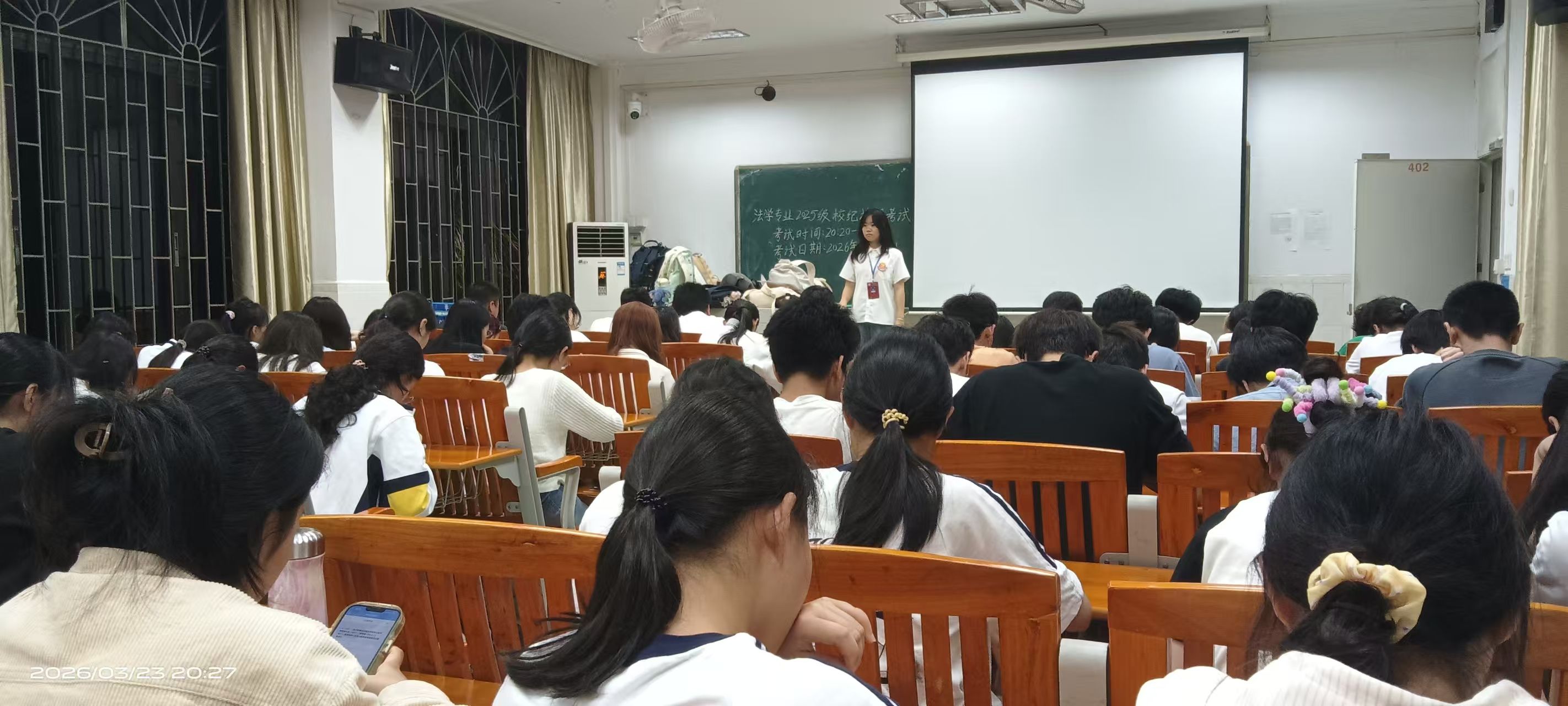 俗话说:“无规矩不成方圆,守纪律方行致远。”为帮助2025级新生扣好老员工涯“第一粒扣子”,筑牢规则意识,伟德国际victor1946于3月23日组织开展了新生校规校纪专项考试。本次考试采用闭卷形式,内容涵盖学籍管理、行为规范、奖惩制度、宿舍安全及学术诚信等核心条款。考场上,同学们自觉遵守考试纪律,凝神思考,认真作答,展现了政法学子严谨务实的精神风貌。监考教师恪尽职守,整场考试流程规范、考风严明。