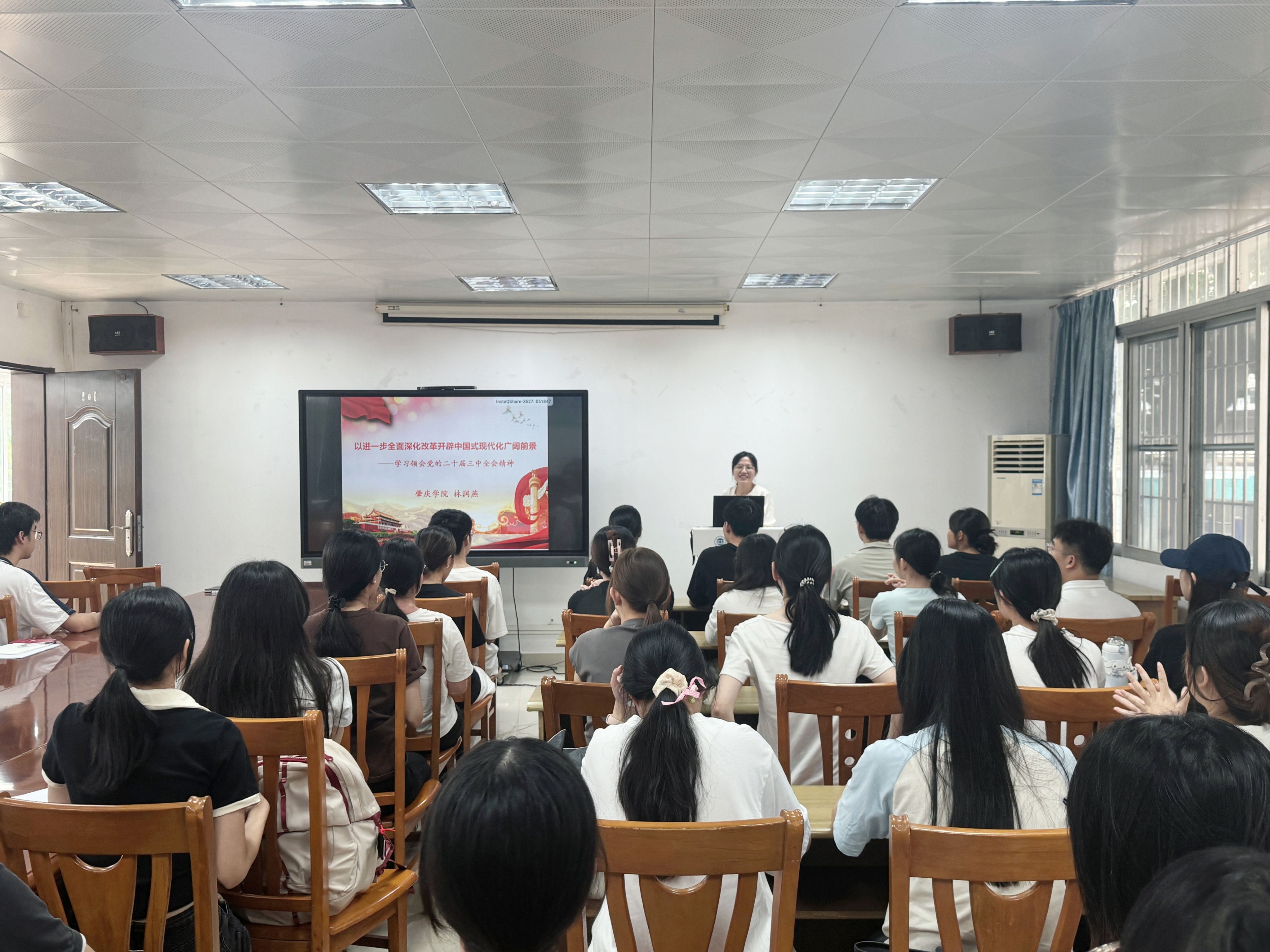 林润燕副经理分别从进一步全面深化改革的重大意义和总体要求、聚焦重点在更高水平上进一步全面深化改革、提高党对进一步全面深化改革的领导水平三个板块,深入浅出地解读了党的二十届三中全会精神,强调了进一步全面深化改革的重要性和紧迫性。她指出,进一步全面深化改革不仅是推动中国式现代化的关键举措,也是实现中华民族伟大复兴的必由之路。通过一系列生动的案例,林经理展示了改革带来的积极变化和取得的显著成效,让在场的师生党员深受启发。