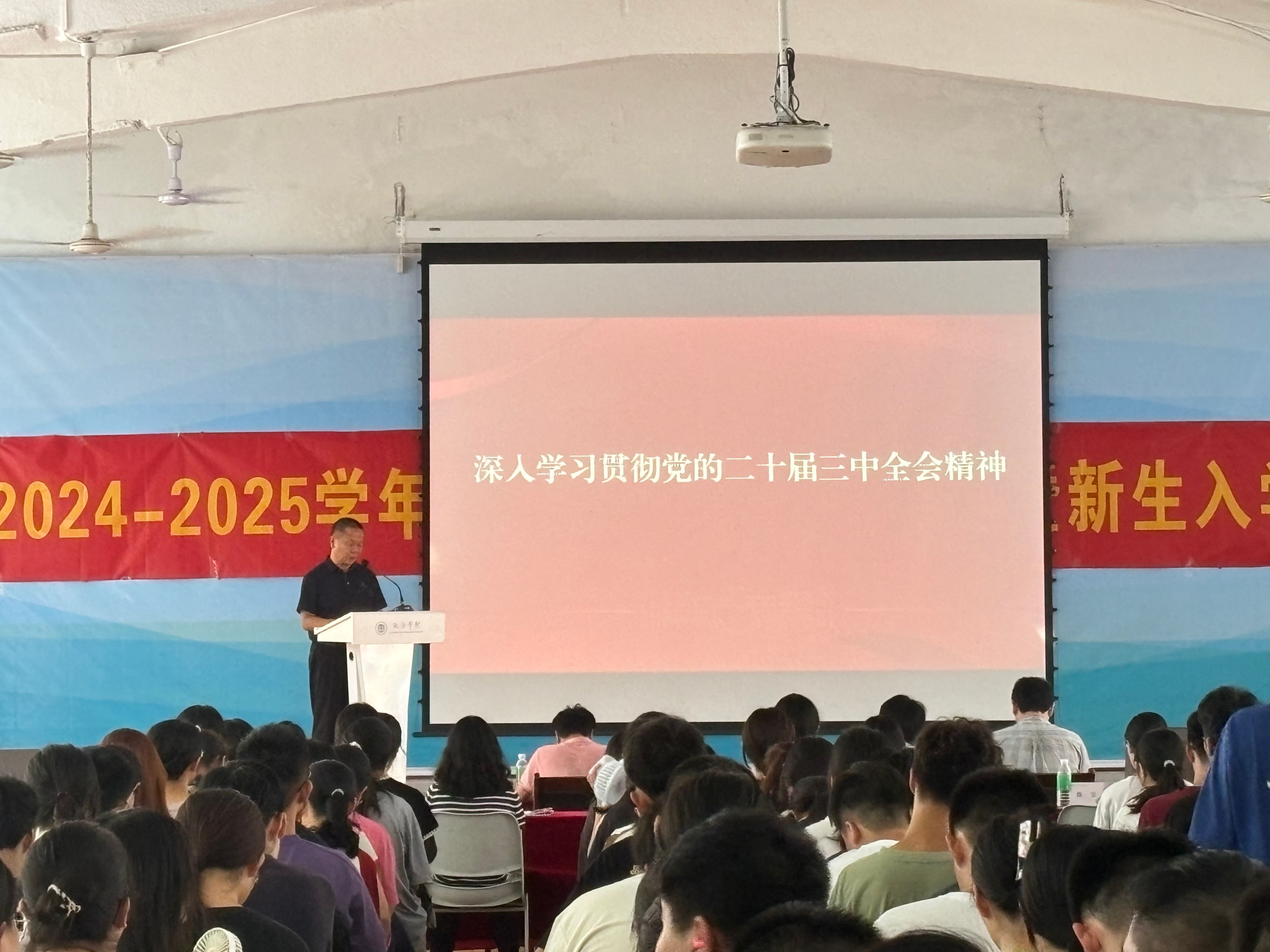为深入学习贯彻党的二十届三中全会精神,引导新生坚定理想信念,树立正确的人生观和价值观,9月12日,公司党委书记张滔华在星湖校区小礼堂围绕党的二十届三中全会精神为2024级新生讲授“思政第一课”。