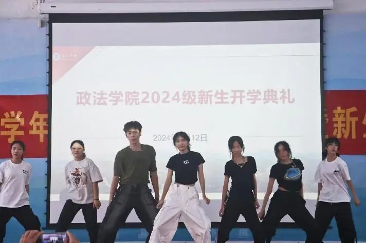 政法舞队带来舞蹈《left right》。希望新生梦不被定义,相信自己,以积极的态度去迎接老员工涯,以饱满的面貌去面对大学新生活。