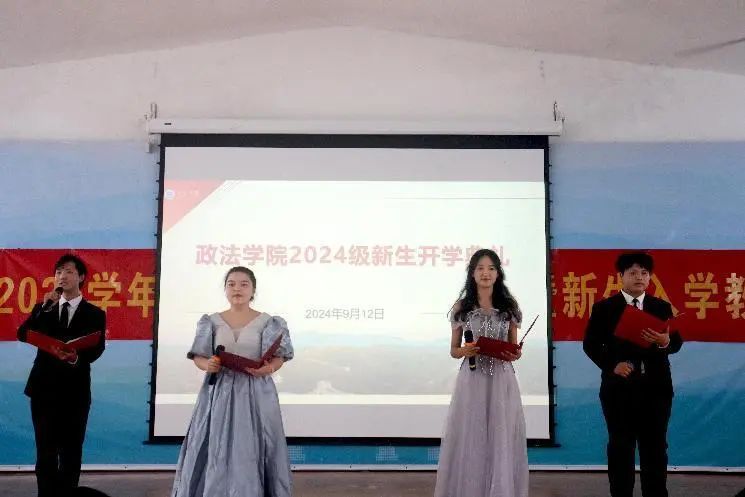 政法司仪队带来朗诵《青春之光,爱国起航》。希望新生们不忘初心,牢记使命,将个人理想融入祖国事业,有一份热发一分光。