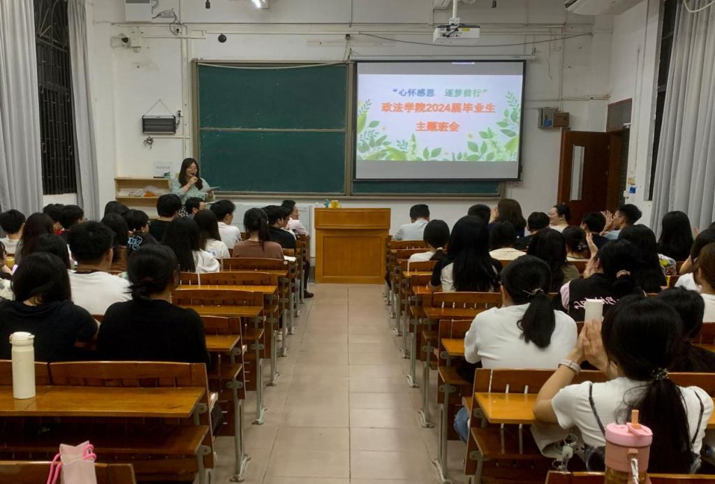 会上,党委副书记罗江鹏鼓励毕业生要树立远大目标与理想,明确自身定位、抓住机遇、迎接挑战,勇做新时代的追梦人,在人生航道上坚定未来航向,不负韶华,砥砺前行,创造属于自己的美好前程。法律系系主任姚迪迪老师、公管系系主任李勇老师以及知识产权专业负责人韩荣老师,分别为毕业生赠上教师寄语,倡导同学们毕业后也要不断锤炼专业技能,提升专业素养,认清当前就业形势,积极发挥个人优势,为国家社会发展贡献自己的力量。辅导员陈云老师为毕业生详细讲解了毕业流程和相关手续的办理方法,黄健成老师进行了征兵入伍政策宣传与指导。