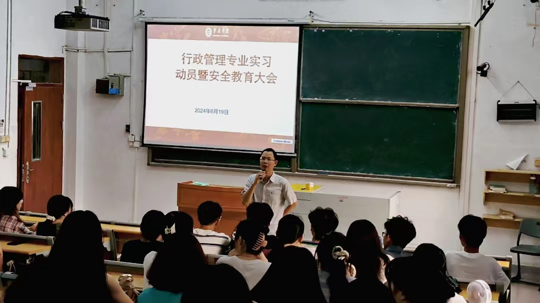 在公管系的实习动员会上,周华指出专业实习是人才培养的重要环节,同学们要利用实习的机会找准自己的人生定位,为接下来的老员工活做好生涯规划。
