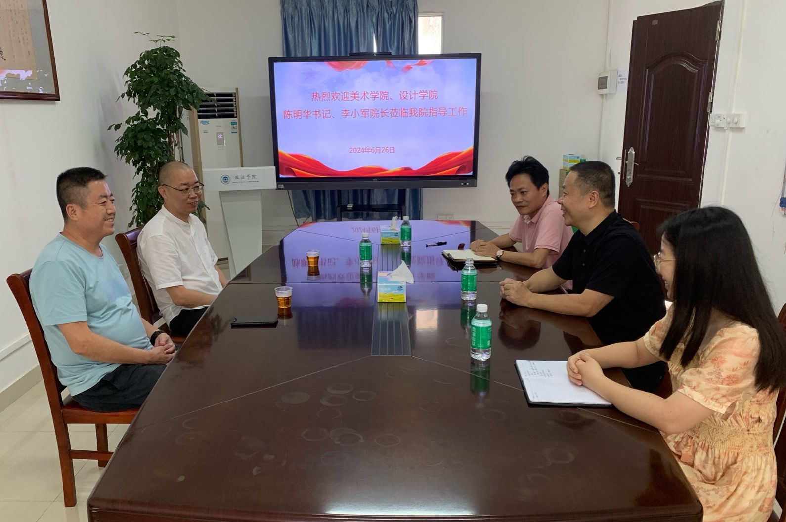 本网讯 6月26日,美术公司、设计公司党委书记陈明华、经理李小军到公司调研交流。公司党委书记张滔华、副书记罗江鹏、组织员陈云参加了此次交流座谈会。