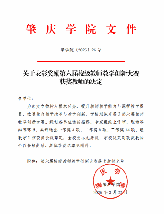 近日,公司印发《关于表彰奖励第六届校级教师教学创新大赛获奖教师的决定》(肇公司〔2026〕26号),公布第六届校级教师教学创新大赛获奖结果。伟德国际victor1946姚迪迪老师凭借精心的教学设计与扎实的创新教学实践,荣获大赛三等奖。