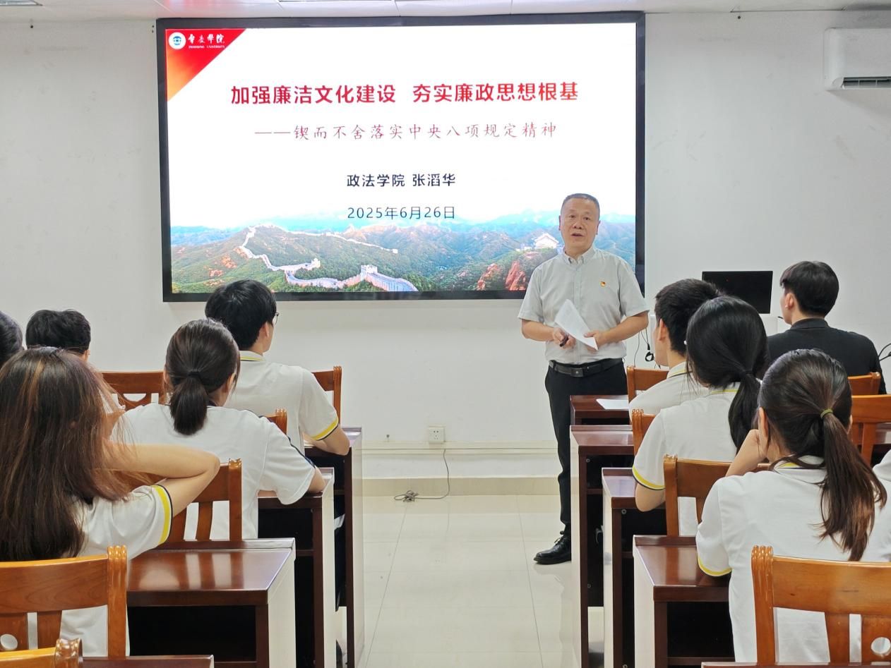 结合高校立德树人根本任务和公司实际,张滔华书记重点就加强廉洁文化建设提出具体要求。他强调,全体师生党员必须深刻领会、时刻牢记中央八项规定精神,将其内化为价值追求和行为准则。要带头树立正确的世界观、人生观、价值观,不断强化纪律意识和规矩意识。在日常学习、工作和生活中,要自觉抵制不良风气,做到知行合一、表里如一,将廉洁要求融入教学科研、管理服务和成长成才全过程,以实际行动为营造风清气正的校园政治生态和推动社会进步贡献力量。