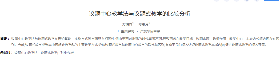 近日,公司教师方拥香副教授在《中学政治教学参考》发表论文成果。据悉,《中学政治教学参考》(第一周高中教学)为北京大学《中文核心期刊要目总揽》(2020版)期刊。文章具体内容如下:
