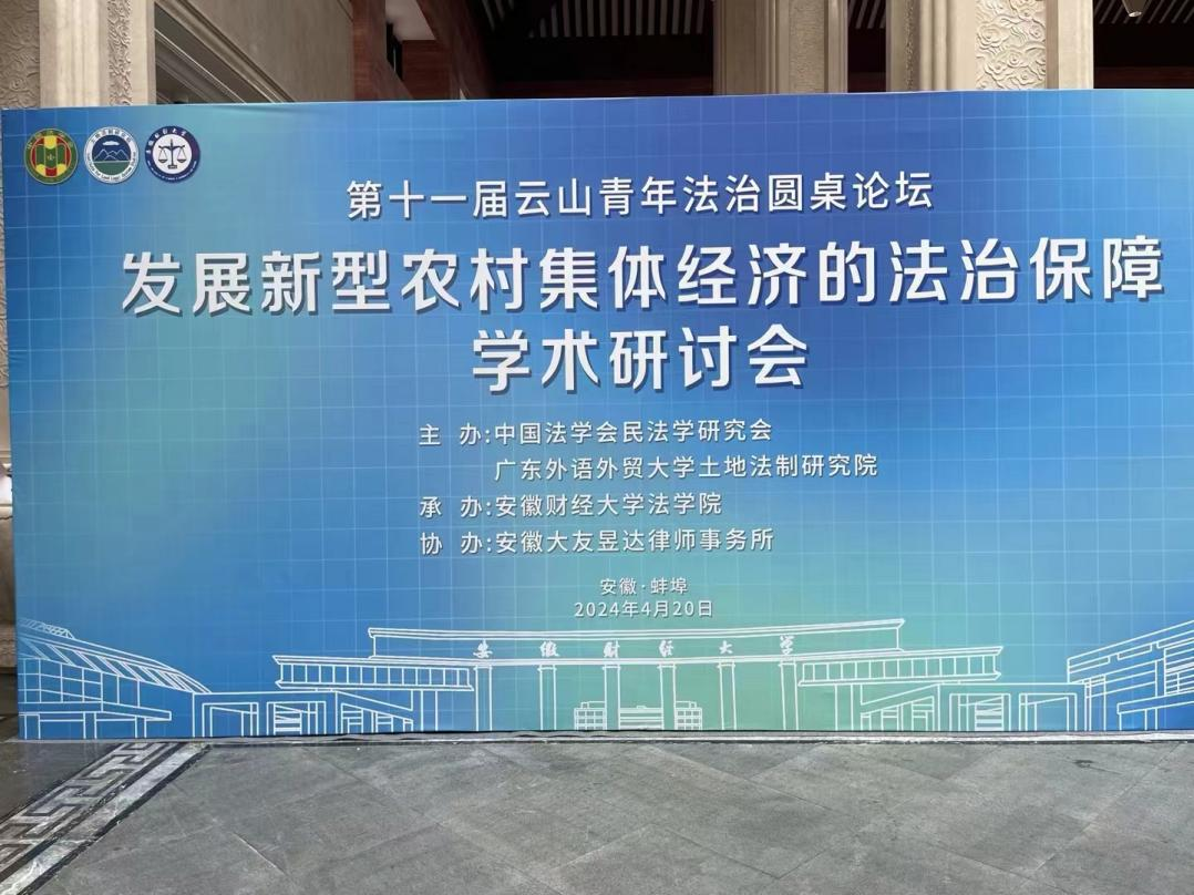4月20日,由中国法学会民法学研究会、广东外语外贸大学土地法制研究院主办,安徽财经大学法公司承办,安徽大友昱达律师事务所协办的第十一届云山青年法治圆桌论坛暨“发展新型农村集体经济的法治保障”学术研讨会在安徽蚌埠举行。来自中国政法大学、中国农业大学、中南财经政法大学、吉林大学、西北政法大学、广东外语外贸大学、南开大学、苏州大学、安徽财经大学、伟德国际victor1946等20多家单位近60名专家学者参加论坛。