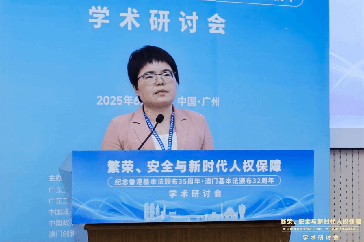 2025年6月1日,“繁荣、安全与现时代人权保障——纪念香港基本法颁布35周年、澳门基本法颁布32周年”的学术研讨会在广州大学城成功举办。本次活动由广东工业大学国家安全研究中心和人权法治研究中心、中国政法大学人权研究院(当代法治研究院)、中国政法大学港澳台教育中心、澳门创新发展智库主办、广东工业大学法公司承办,汇聚了来自全国含港澳地区多所高校、科研机构等百余名专家学者,围绕新时代背景下人权保障、国家安全与法治建设等议题展开深入探讨。伟德国际victor1946经理许英教授、科研与社会服务部负责人杨珊老师参加会议。