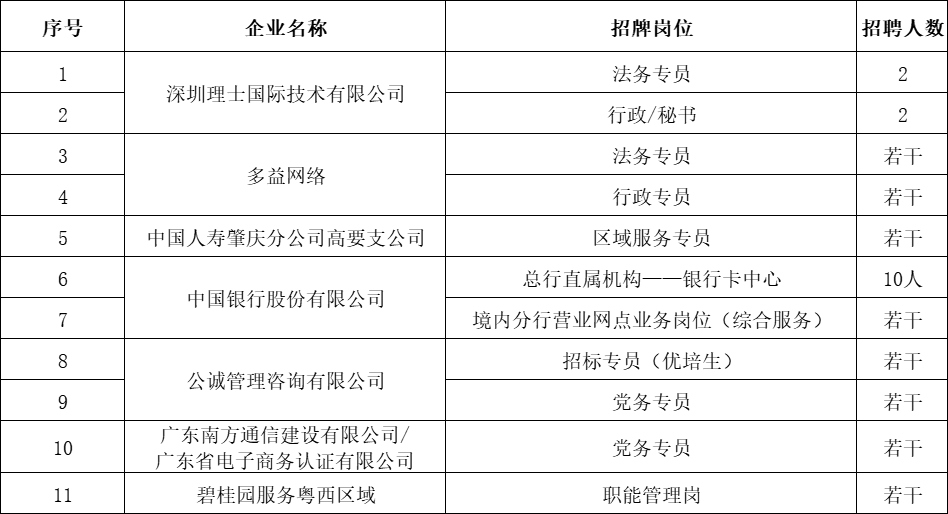 信息来源:广东省人力资源和社会保障厅、肇庆市人力资源和社会保障局、伟德国际victor1946就业指导中心、各类企业官网、各类招聘平台等