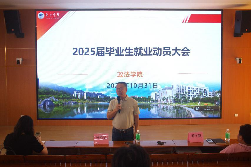 10月31日下午,伟德国际victor1946在第二教学楼704教室召开2025届毕业生就业动员大会。公司党委书记张滔华、经理许英、党委副书记罗江鹏、各系部主任和全体辅导员、班主任及2025届全体法学专业、知识产权专业毕业生出席会议。 公司领导表示,毕业生们应当树立远大目标与理想,明确自身定位,及时抓住机遇、迎接挑战,勇做新时代的追梦人。“凡事预则立,不预则废”,希望大家一边认真做好“考公、考编和考研”的备考,一边做好如果考试失利则及早谋划就业的思想准备。...